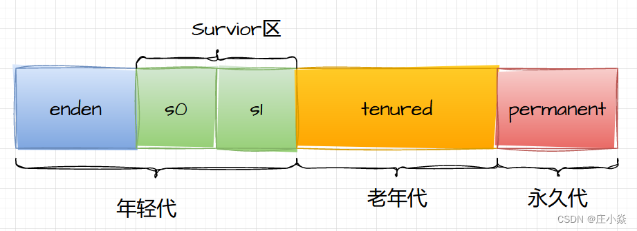 - 需要注意的是,永久代在 JDK 8 中已经被元空间所取代,所以在 JDK 8 及以后的版本中,永久代已不存在。