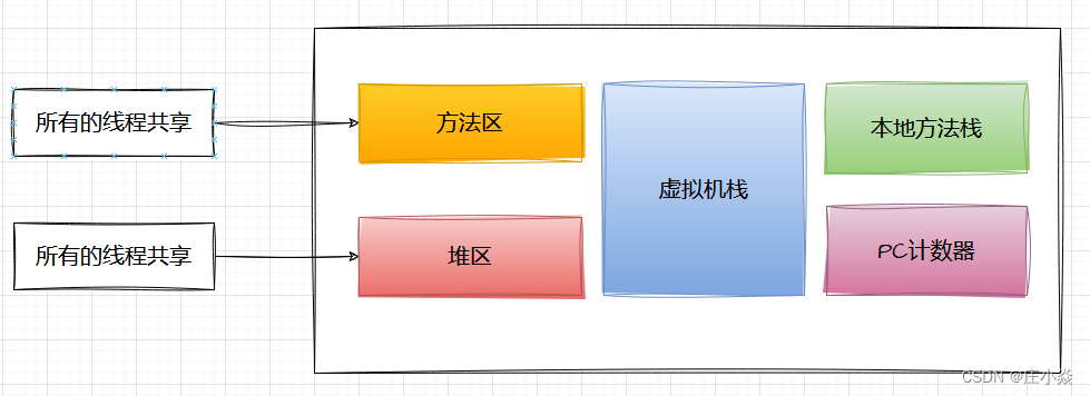 - 方法区(Method Area)与 Java 堆一样,是各个线程共享的内存区域。