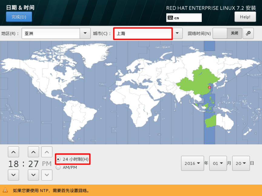 五、时区选择,选择日期和时间 中国范围内建议选择上海,并选择24小时制,设置完成,单击完成按钮