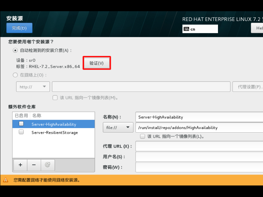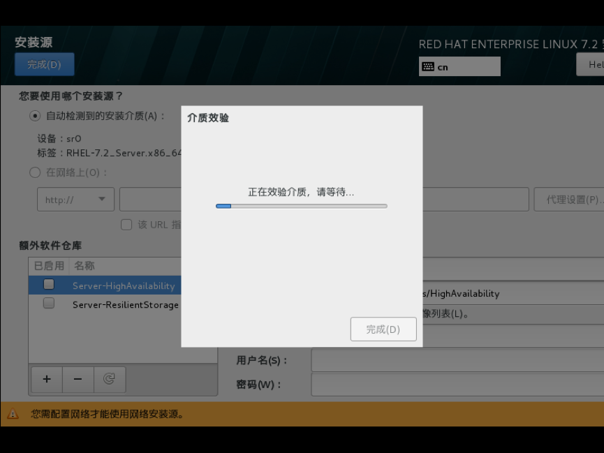 单击验证,验证光盘或镜像是否完整,防止安装过程出现软件包不完整,导致无法安装