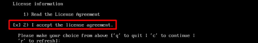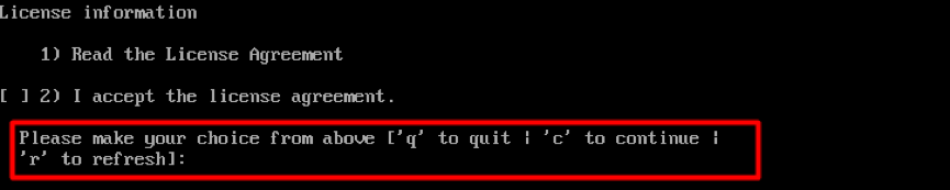 输入数字2,接受许可认证