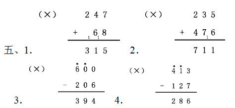 五、下面的计算正确吗?(正确的画“√”,错误的画“×”,并把错误的改正过来)(每题2分,共8分)