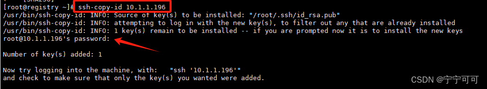 我们可以直接用一条命令完成上面拷贝并授权的过程。ssh-copy-id 10.1.1.196