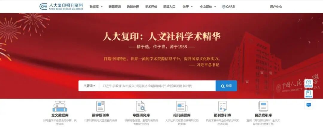 近日,人大复印报刊资料数据库对我馆开通试用。