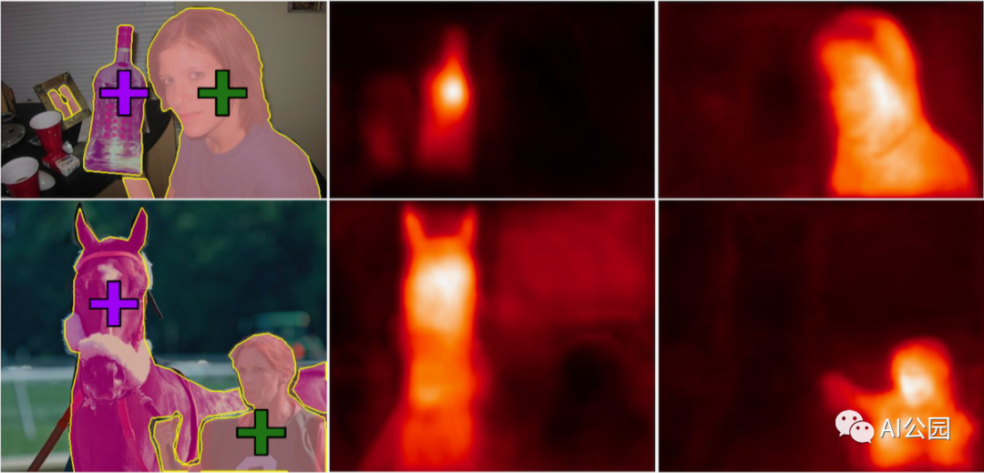 由研究者的嵌入网络确定的“亲和性”的例子。较亮的区域表示像素,表明网络得出的结论是有一些共同之处。