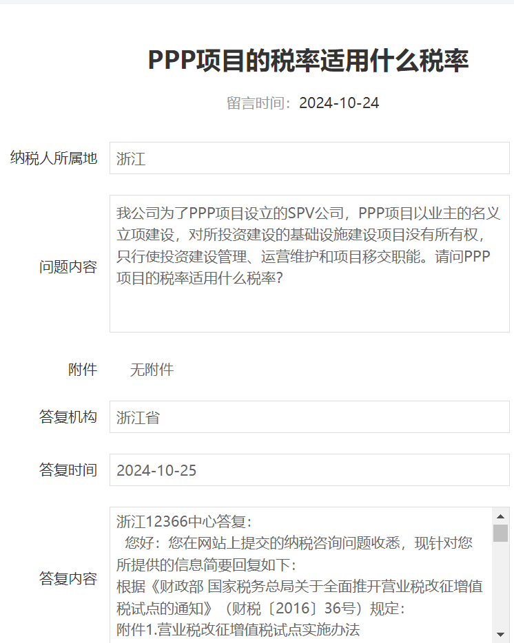 关于“PPP项目适用什么税率”的问题,下面这个答复很全面哦!