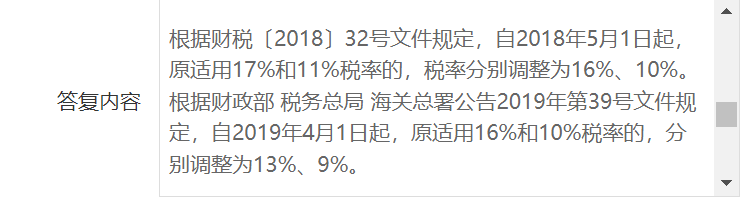 根据财税〔2018〕32号文件规定,自2018年5月1日起,原适用17%和11%税率的,税率分别调整为16%、10%。