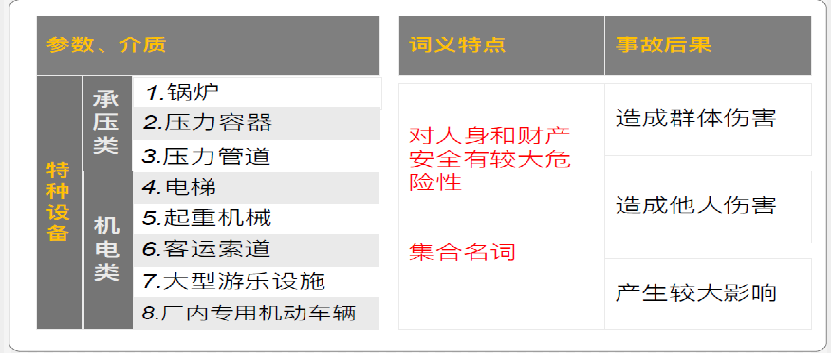 本法所称特种设备,是指对人身和财产安全有较大危险性的锅炉、压力容器(含气瓶)、压力管道、电梯、起重机械、客运索道、大型游乐设施、场(厂)内专用机动车辆,以及法律、行政法规规定适用本法的其他特种设备。