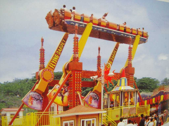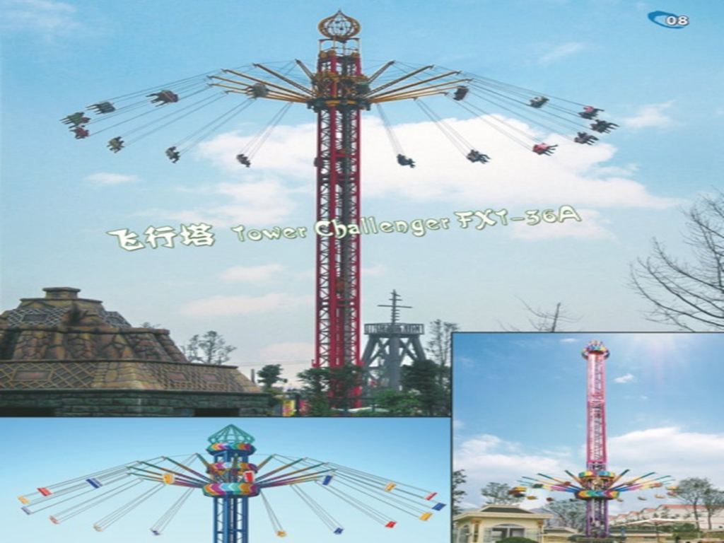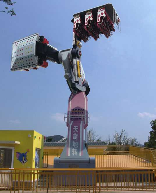飞行塔类—乘人部分用挠性件吊挂,边升降边绕垂直轴回转
