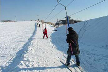 利用运载钢丝绳作为牵引动力带动拖牵杆拉乘客移动的设施。分高位(拖牵索距地面高度大于2m)、低位拖牵索道。