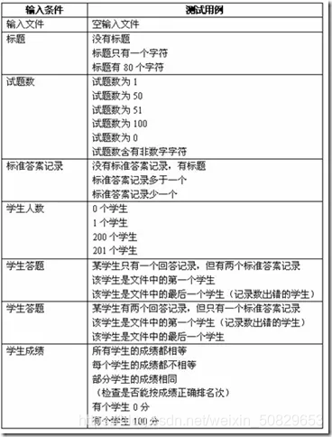 分别考虑输入条件和输出条件,以及边界条件。给出右表所示的输入条件及相应的测试用例。