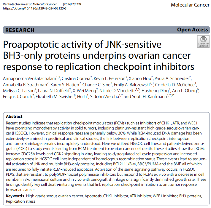 标题:Proapoptotic activity of JNK-sensitive BH3-only proteins underpins ovarian cancer response to replication checkpoint inhibitors