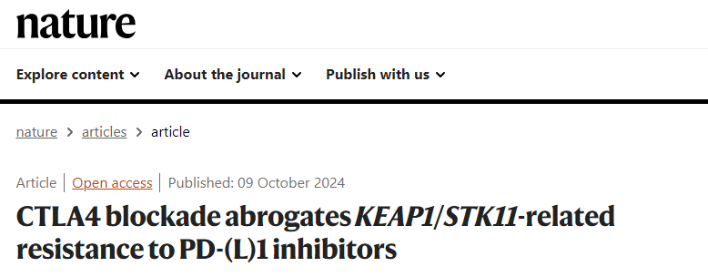 标题:CTLA4 blockade abrogates KEAP1/STK11-related resistance to PD-(L)1 inhibitors