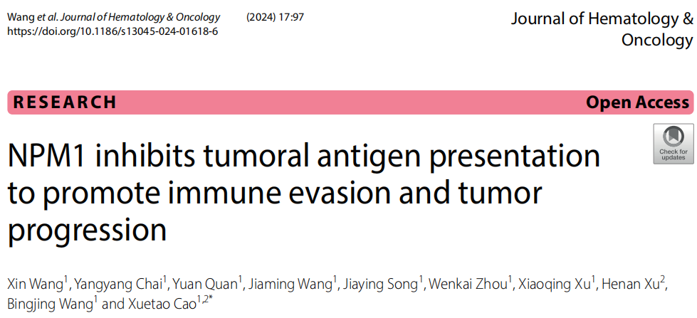标题:NPM1 inhibits tumoral antigen presentation to promote immune evasion and tumor progression