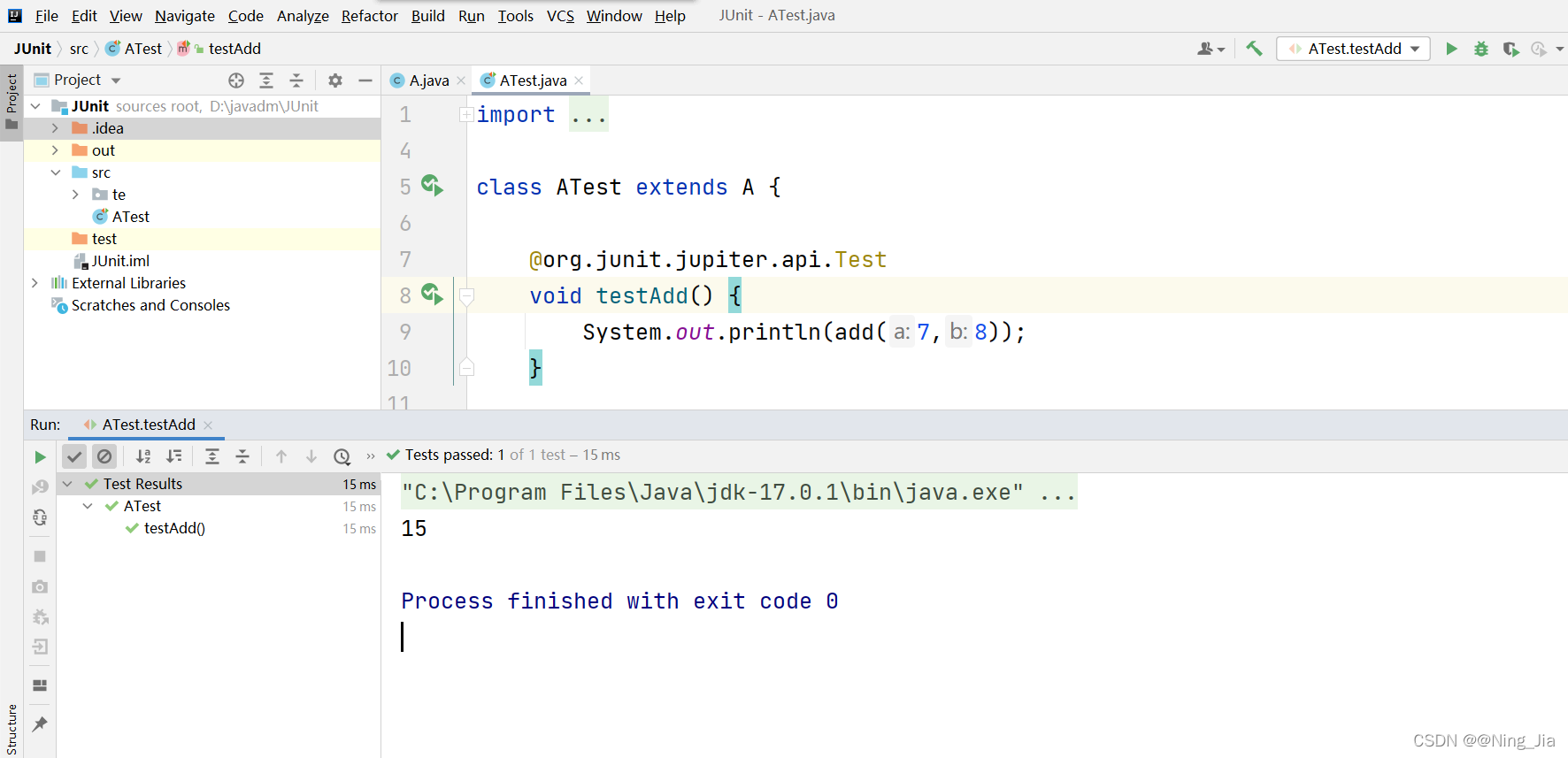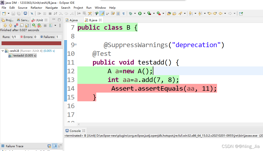 Assert.assertEquals(aa, 15);