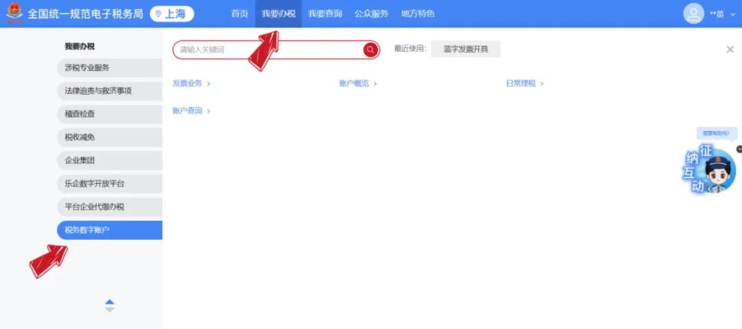 简单!登录新电子税局后,在【我要办税】中点击【税务数字账户】跳转至电子发票服务平台,可以通过以下方式下载打印数电票。