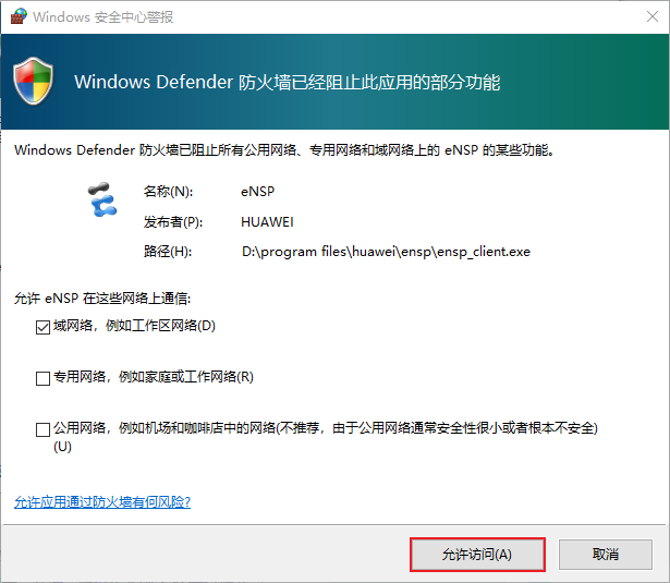 弹出的防火墙阻止窗口,选择允许访问(后续弹出的所有类似对话框一律都选择允许访问)