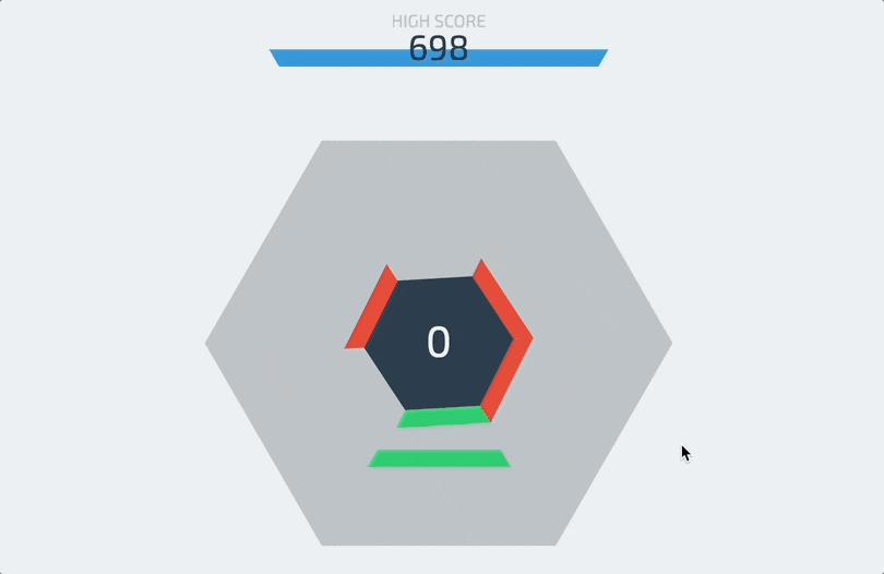 左/右方向键旋转六边形,让下落的彩色条块落在指定的边上,向下方向键可以加快下落速度。通过连接 3 种或以上相同颜色的块,来清除块并获得积分,连续消除有积分加倍的奖励,当色块突破深灰色六边形时游戏结束。