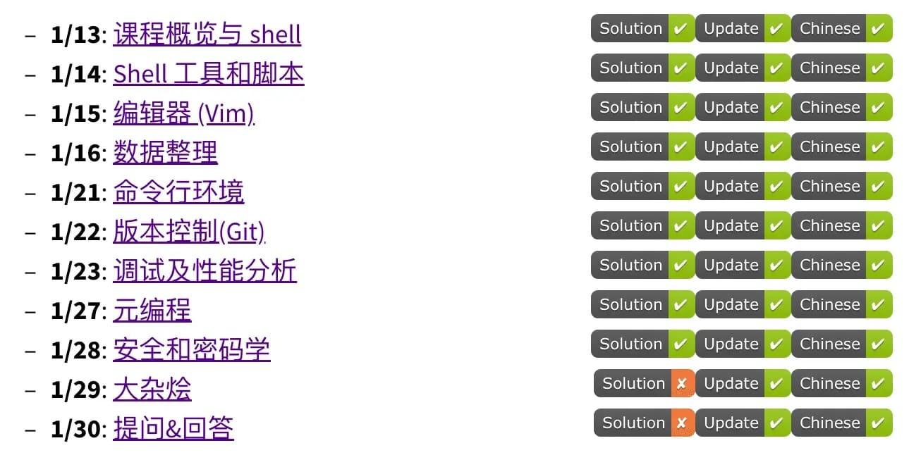 大学里的计算机课程往往只专注于讲授数据结构、操作系统这些知识,对于编程开发中常用的工具则留给学生自行学习。在 MIT 这个课程中,你可以了解和掌握命令行(shell)、文本编辑器(Vim)、版本控制系统(Git)等强大的工具,越早接触越能更加熟练地使用它们,有助于未来的职业生涯。