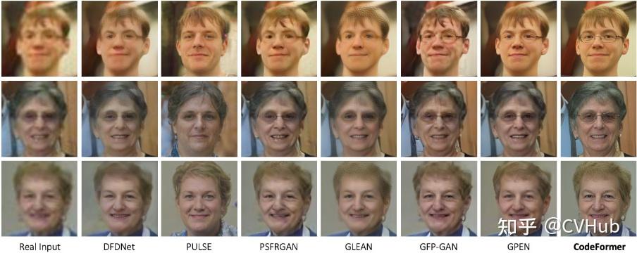 NeurIPS 2022的一篇著作。这是一种基于Transformer的预测网络,能够对低质量人脸的全局组成和上下文进行建模以进行编码预测,即使在输入信息严重缺失的情况下也能复原出与目标人脸非常接近的自然人脸图像。此外,为了增强对不同退化的适应性,本文还提出了一个可控的特征转换模块(controllable feature transformation module),允许在保真度和质量之间进行灵活的权衡。得益于带有丰富先验的 codebook 和网络整体的全局建模能力,CodeFormer 在质量和保真度方面都始终优于最先进的技术,显示出卓越的退化鲁棒性。最后,对合成和真实世界数据集的广泛实验结果也充分验证了本文方法的有效性。