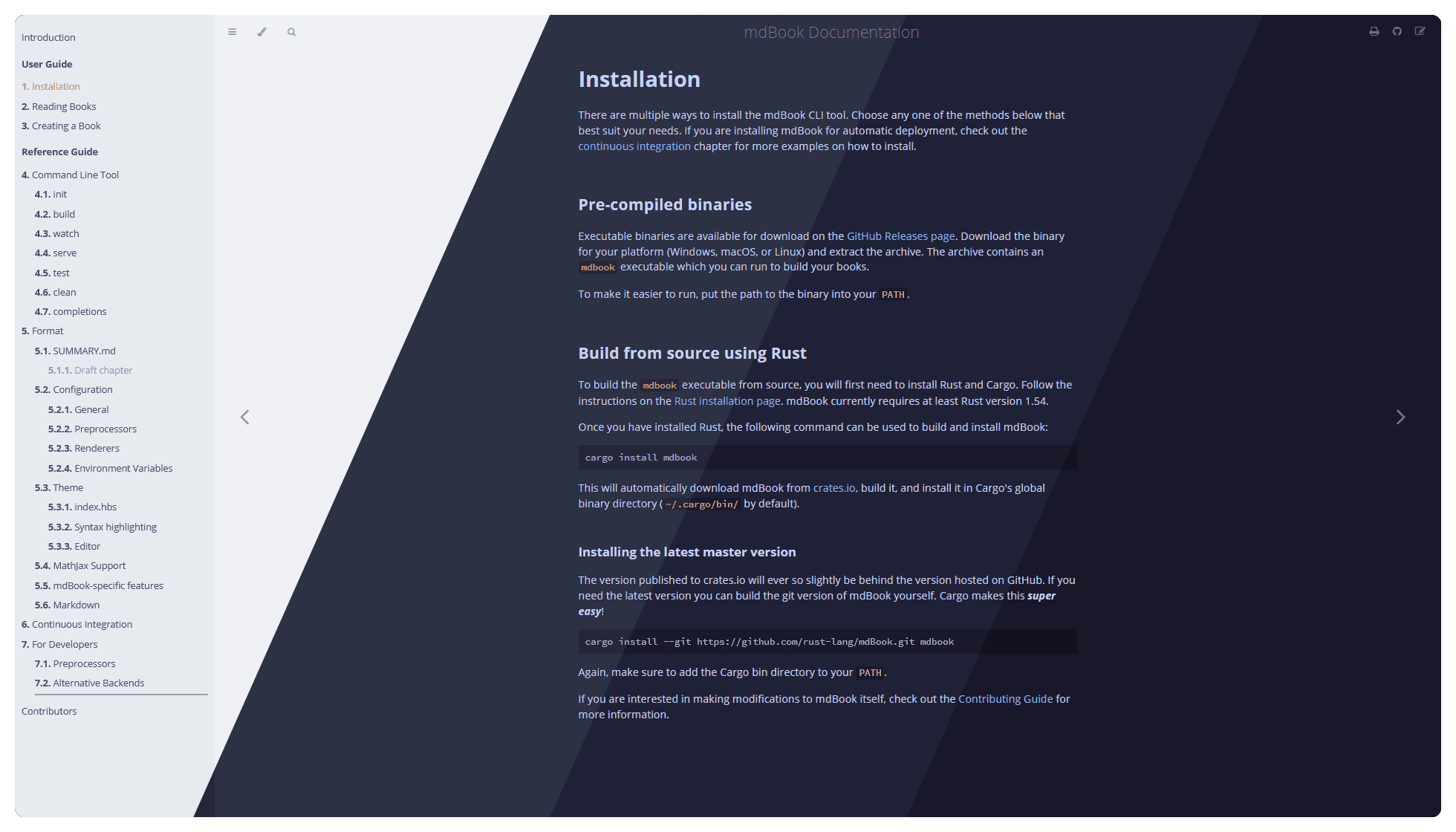 该项目是 Rust 官方开源的制作 Markdown 电子书工具,功能上类似 Gitbook。它可以将 Markdown 文件制作成在线书籍,支持代码高亮、可集成搜索、多主题等功能,简单易用非常适合创建教程、API 文档、开源书籍等。