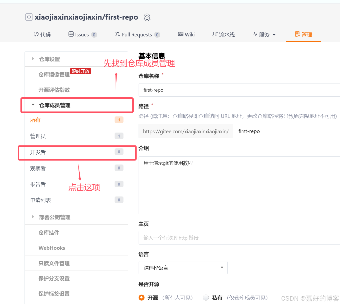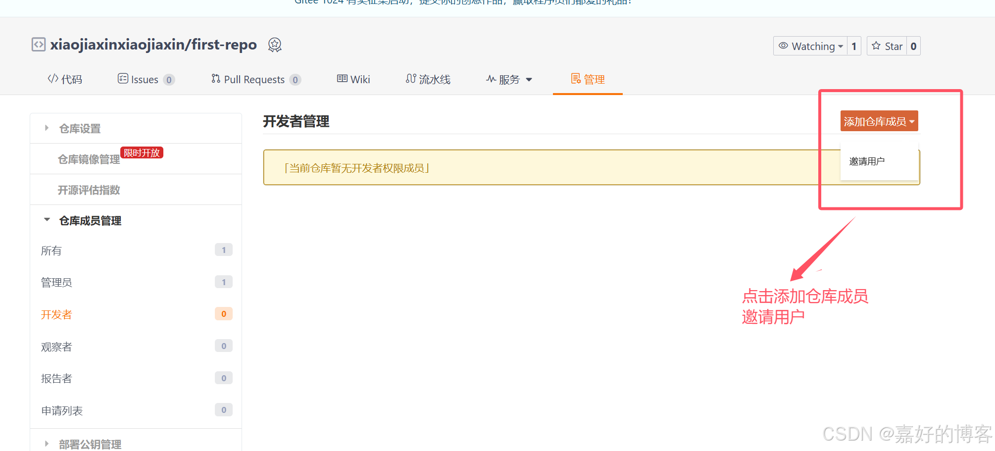<p>1.邀请对方成为你创建的仓库的管理员</p>