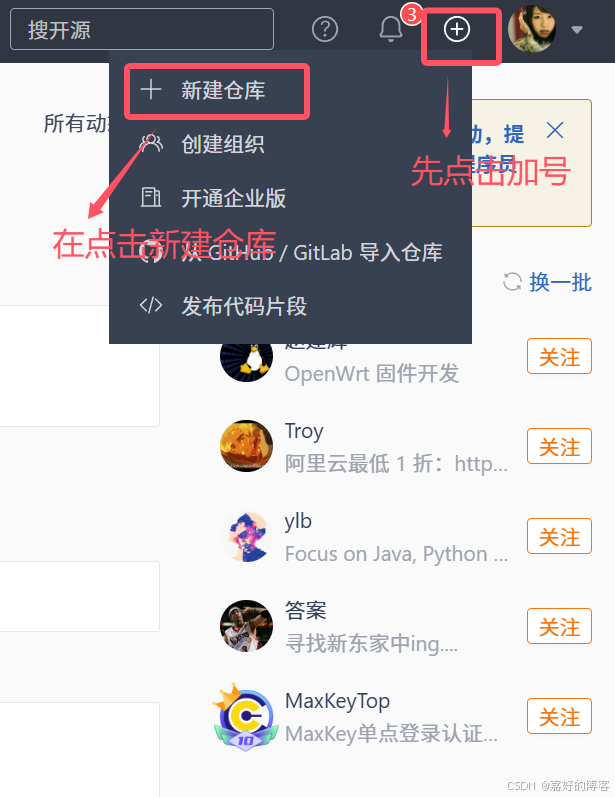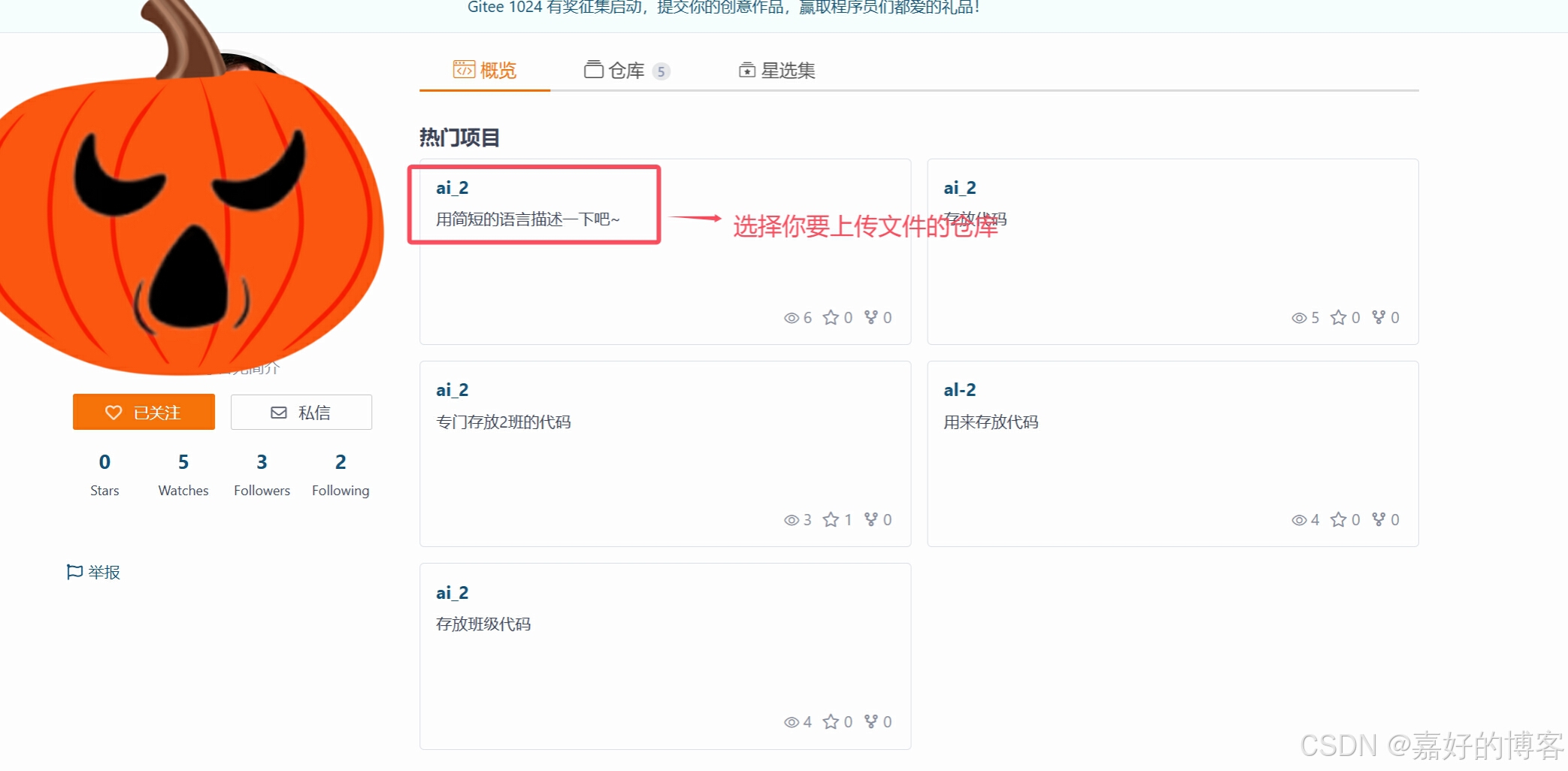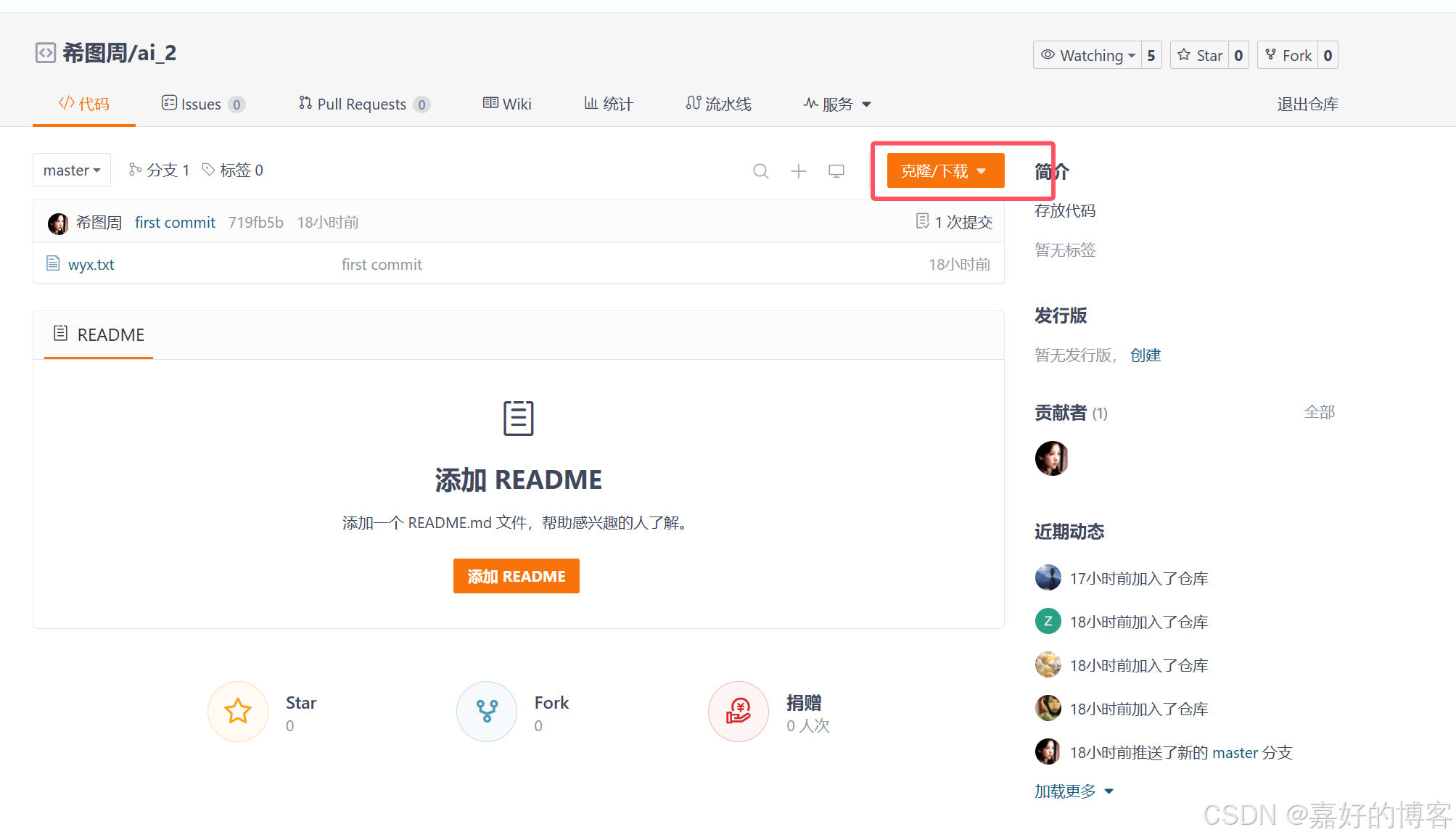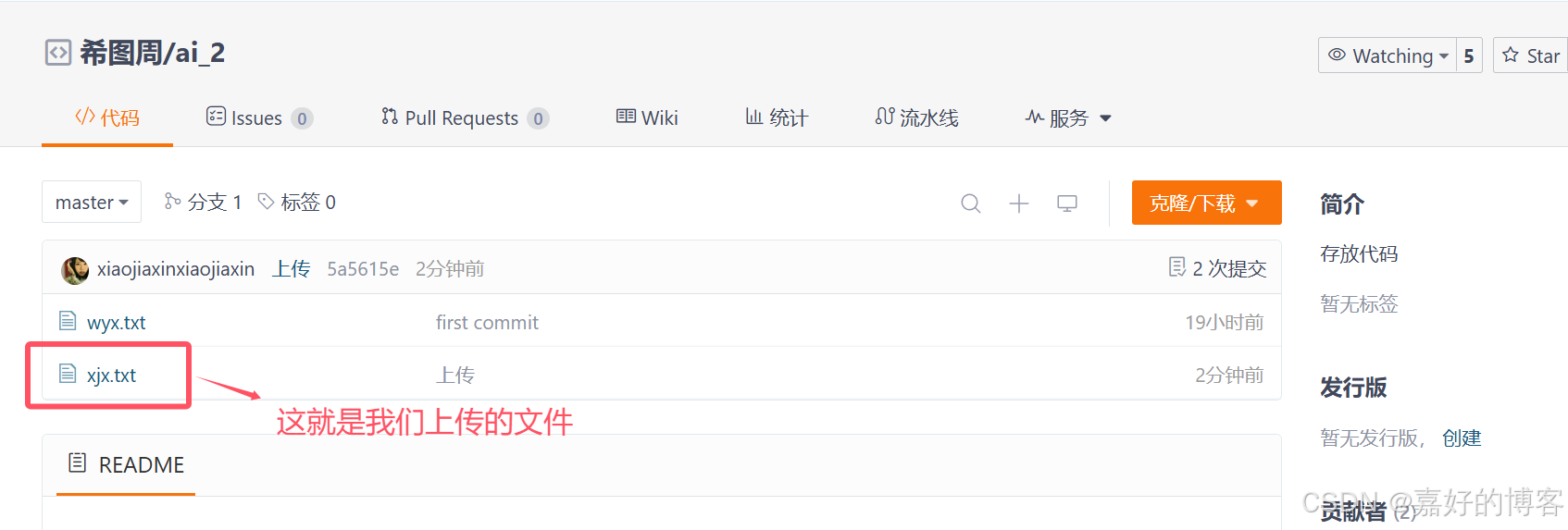 2.和你的成员互相关注过后就可以在对方的仓库里上传文件
