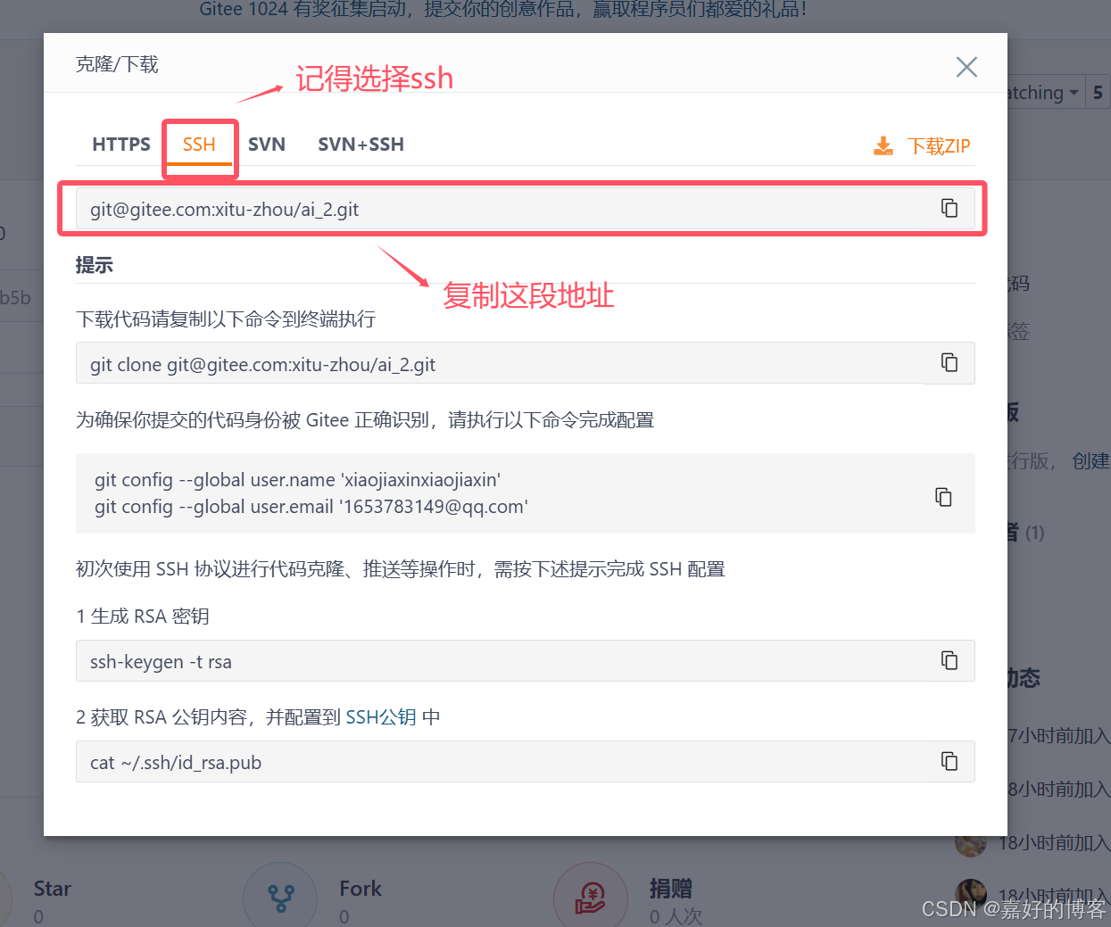 接下来我们会看到两种邀请新用户的方式:分享链接和让对方扫描你的二维码就可以成为你的仓库的开发者了