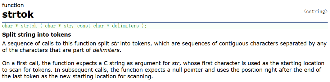 而关于分割字符串,我们在C语言的学习中可能提到过一个字符串函数strtok(),它的头文件是<string.h>,用于分割字符串。它基于一系列的分隔符来分割字符串,并返回指向被分割出的字符串的指针