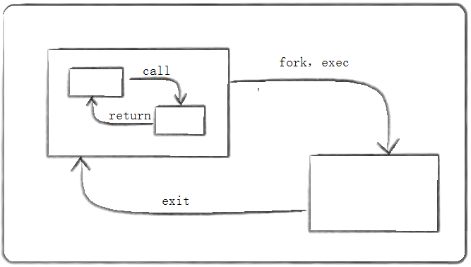 讯享网exec/exit就像call/return一个C程序有很多函数组成。一个函数可以调用另外一个函数,同时传递给它一些参数。被调用的函数执行一定的操作,然后返回一个值。每个函数都有他的局部变量,不同的函数通过call/return系统进行通信