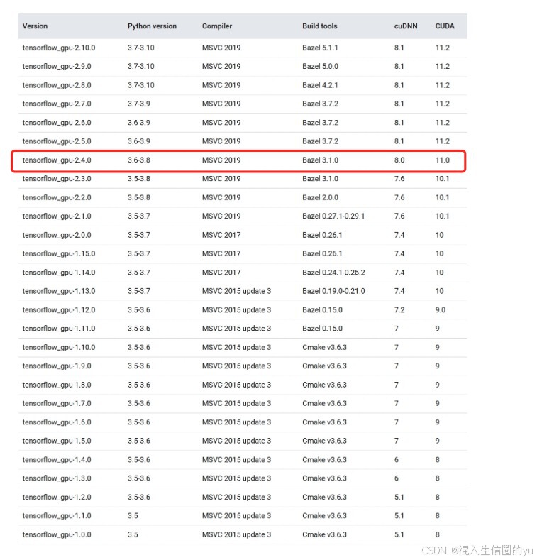 ⚠️⚠️⚠️一定要好好对应!我有一次安装就因为没好好对应(cuda装11.0,cudnn装了8.5然后报找不到xx依赖库的错)导致安装不上tensorflow-gpu