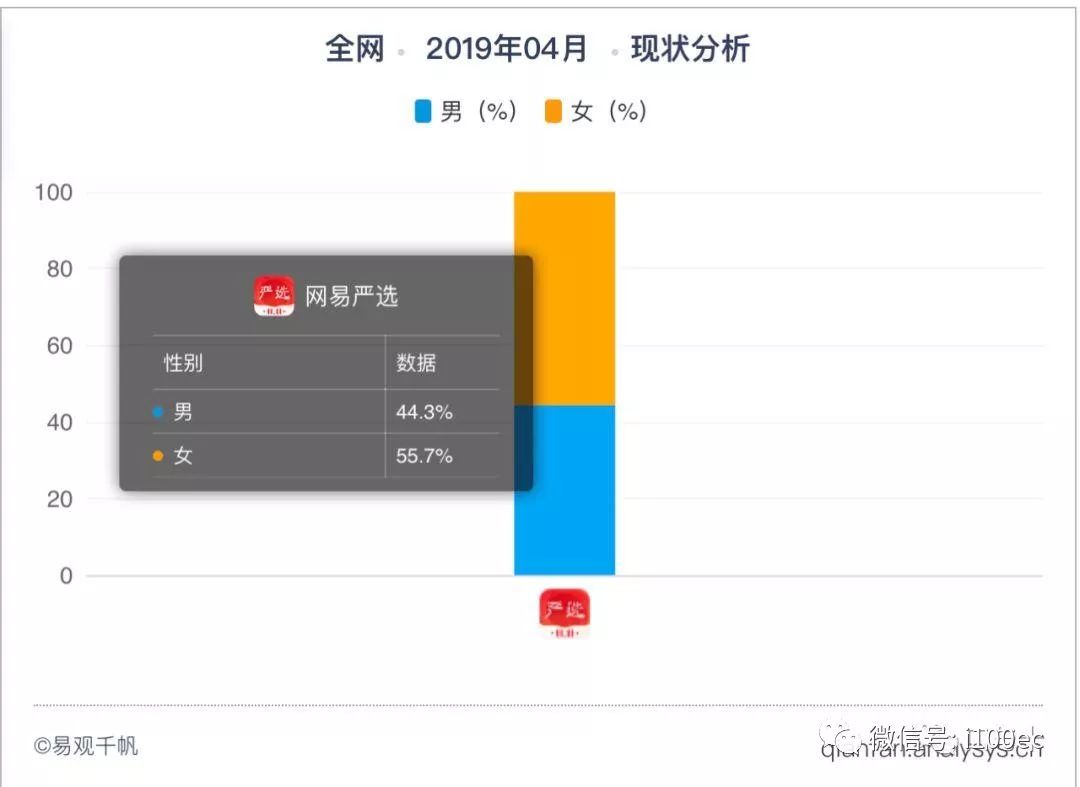 从性别分布来看,严选的女性用户占比稍多于男性用户;这与整一个电商领域的用户群体有关,女性更喜欢网购,而男性对网购的需求没有女性那么强烈。