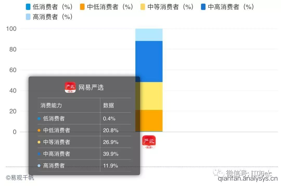 从消费能力来看,严选的主要消费群体为中等消费者和中高消费者,中等消费者占比为26.9%,中高等消费者占比36.9%。