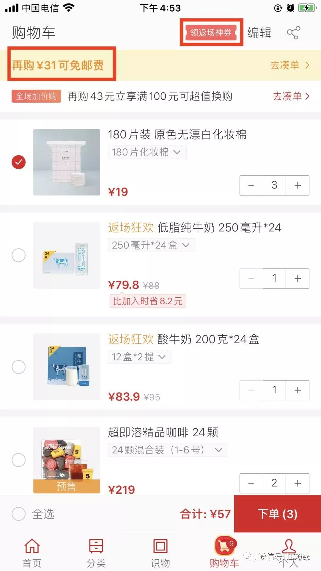4)购物车如下图所示:
