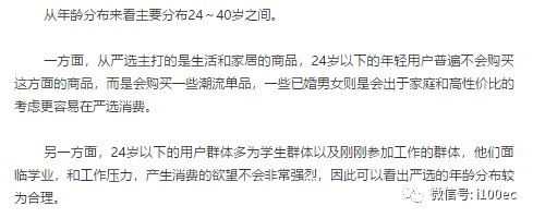 总体来看,严选的用户消费能力比较强,他们更乐于追求生活的品质去消费,因此购买高品质的商品的需求也更强。在已有的需求下,能否为用户推荐他们喜欢,所能接受的高品质的商品,并且根据用户的需求,拥抱更多不同需求的用户,是严选扩大自己用户群体的关键。