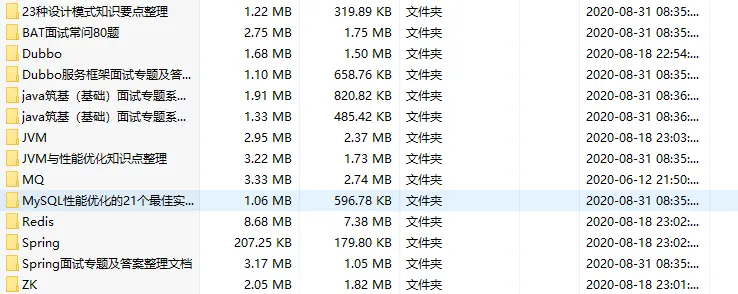 其他像Spring,SpringBoot,SpringCloud,SpringCloudAlibaba,Dubbo,Zookeeper,Kafka,RocketMQ,RabbitMQ,Netty,MySQL,Docker,K8s等等我都整理好,这里就不一一展示了。