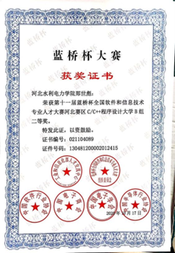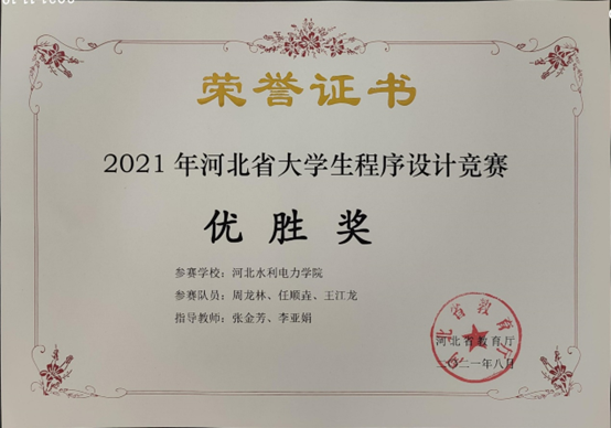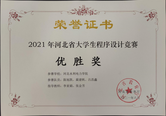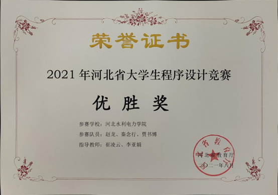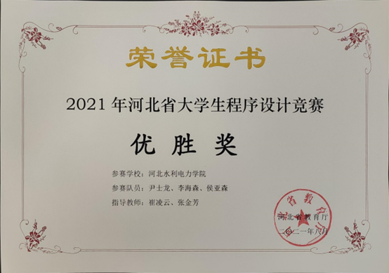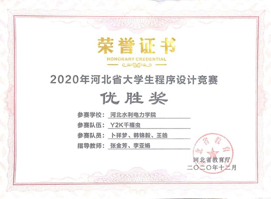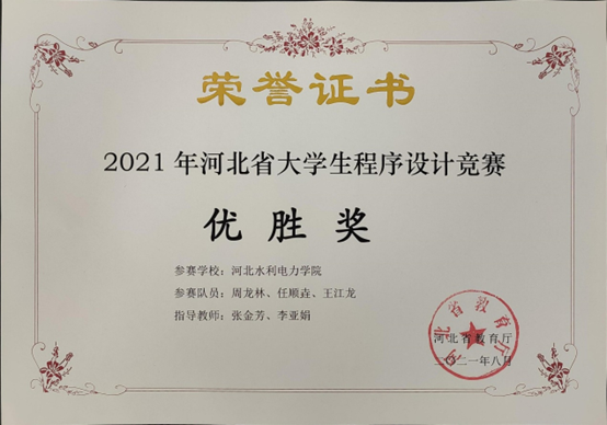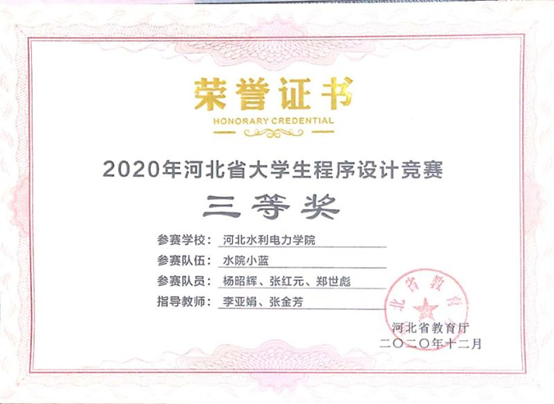 (2)2020年9月,指导学生参加第五届河北省大学生程序设计竞赛,获得省级三等奖1组,优胜奖1组。