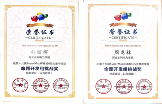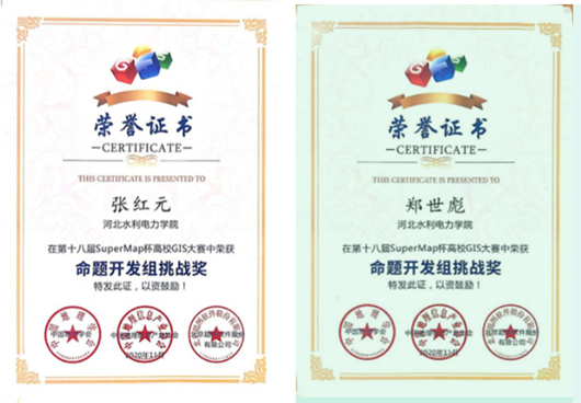 (4)2020年8月指导学生参加第十八届supermap杯高校GIS大赛命题开发组比赛,获得挑战奖1组;2021年9月,指导学生参加第十九届supermap杯高校GIS大赛命题开发组、开发组、论文组,获得命题开发组国家级一等奖1组,二等奖1组。