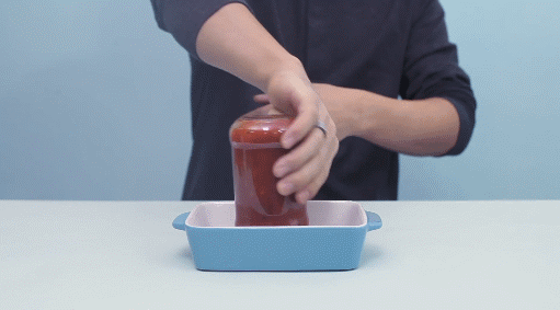 步骤二:把罐头从水里拿出,轻松一拧就开了。