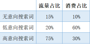 很多竞价员都会控制意向流量的占比,但是他们很容易就忽略意向流量的消费占比,这就会出现一个问题:均价越来越高,整体点击量越来越少了。