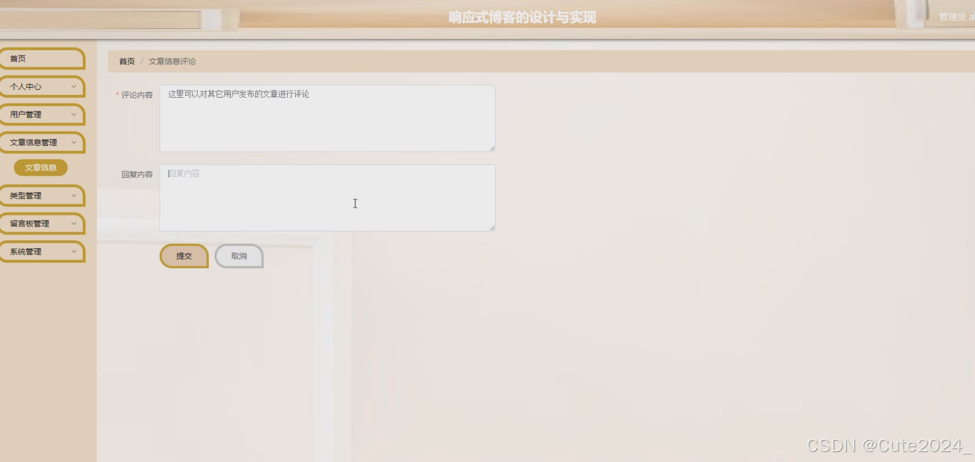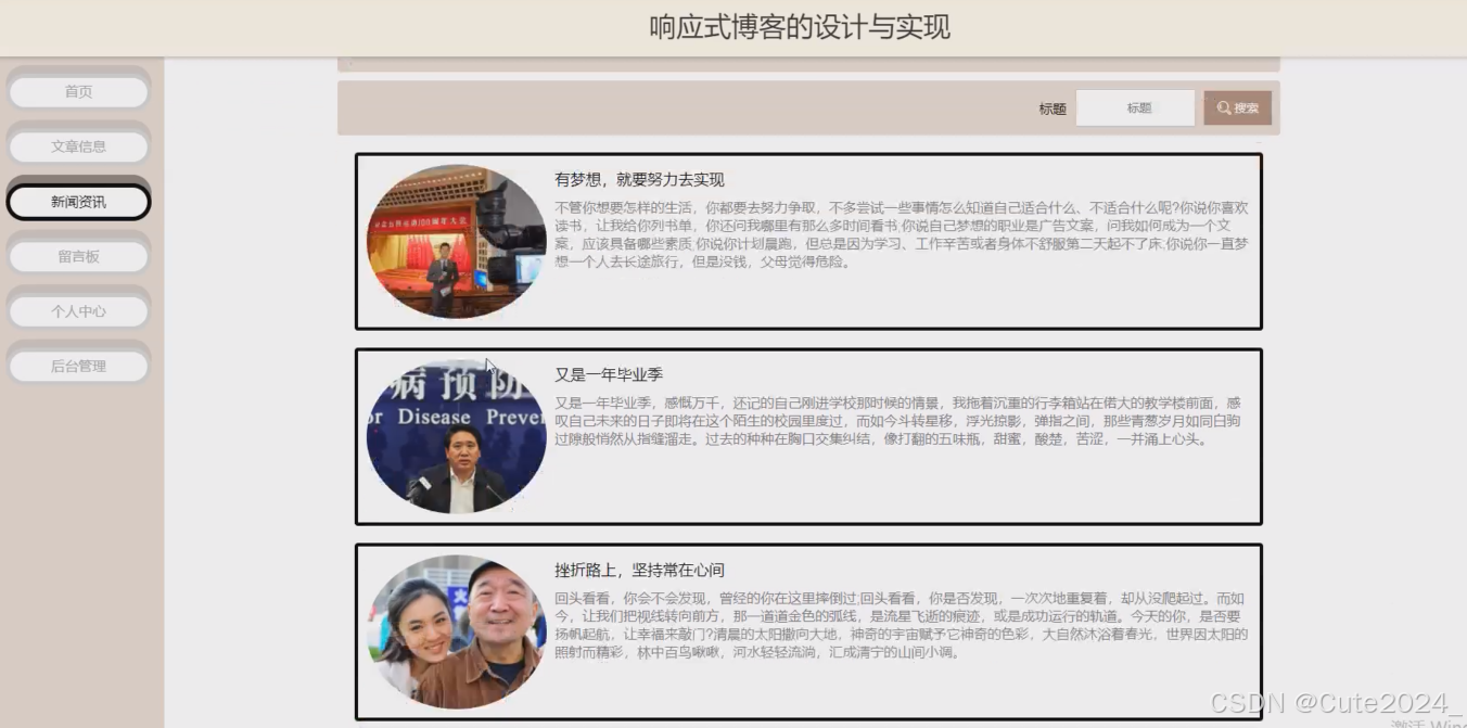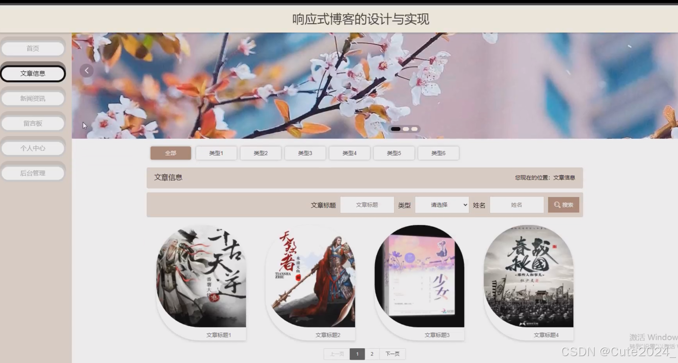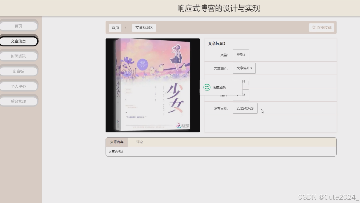 - 前端设计与开发:设计并实现博客系统的前端界面,包括页面布局、样式美化、交互效果等。可以使用HTML、CSS、JavaScript等前端技术,并结合流行的前端框架如Bootstrap、Vue.js等进行开发。