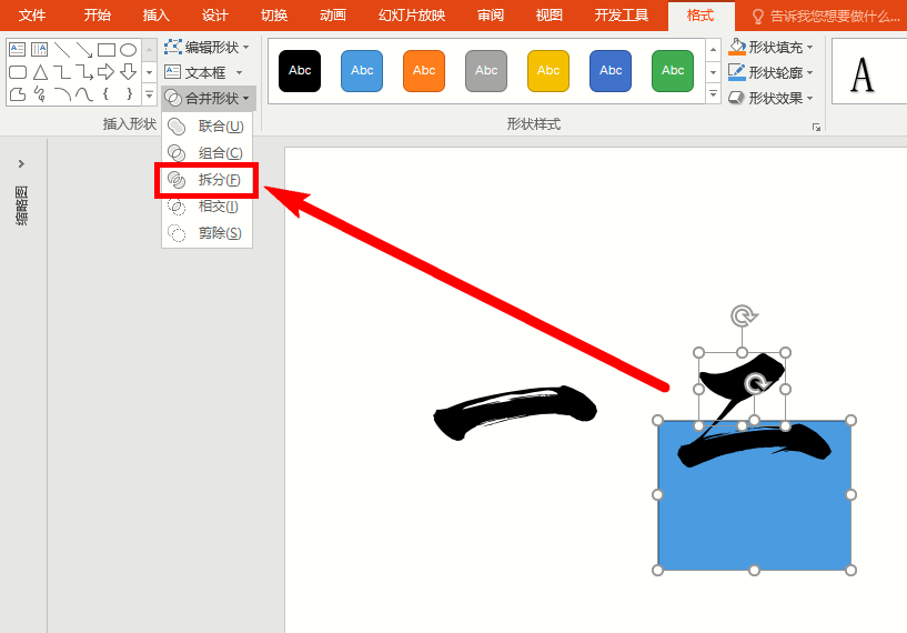 接着插入一个矩形,覆盖在字体一下面,我们利用布尔原则,选择拆分,将内容“一”单独拆出来。
