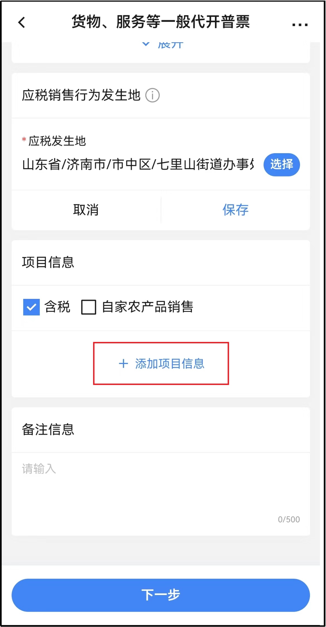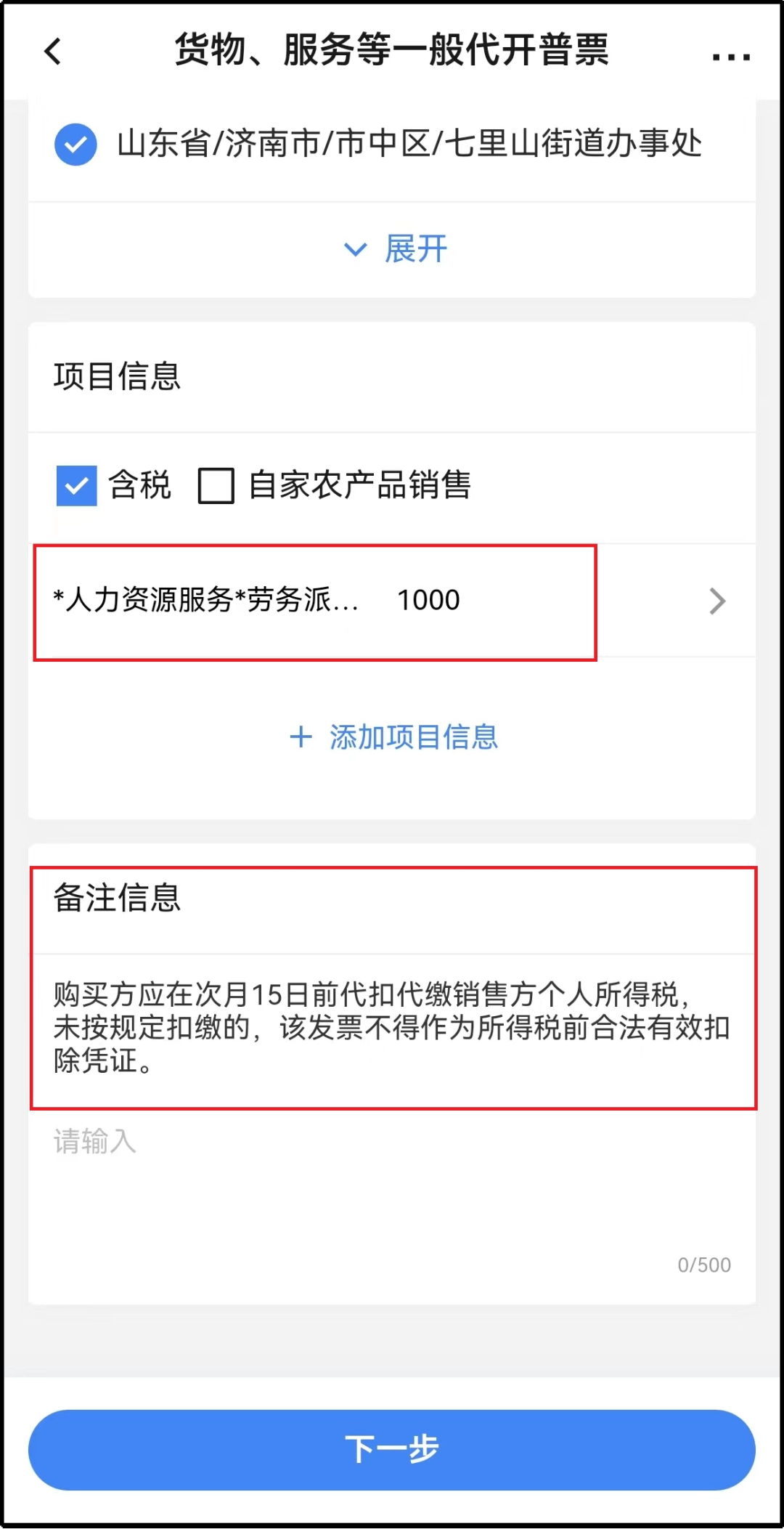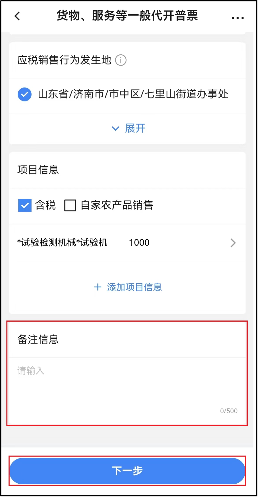 6.纳税人可在备注信息栏输入备注信息,点击【下一步】。