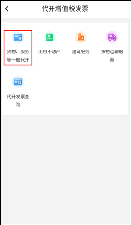 2.登录新电子税务局APP后,在【办税】—【发票使用】—【代开增值税发票】—【货物、服务等一般代开】。
