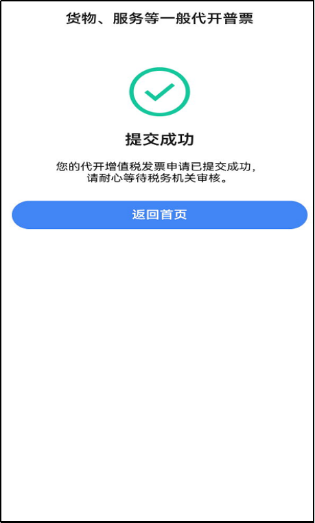 情况2:代开申请信息提交后,需要审核,税务人员审核完成后才可进行后续操作。