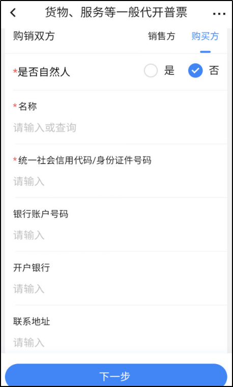 3.点击“添加购买方”,选择是否为自然人,录入购买方信息,保存。