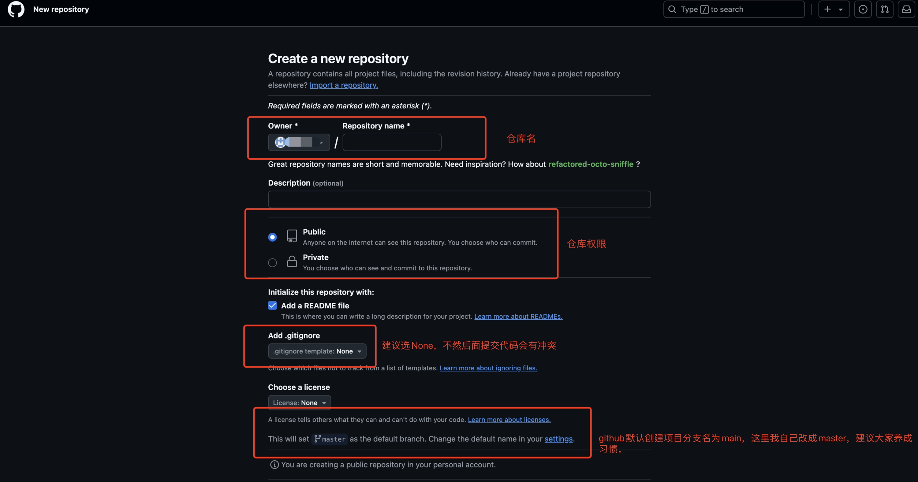 目前版本管理平台比较多,比如github、gitee、gitlab等等,实际上使用方法都差不多,这里以github首次创建项目举例,可一步一步跟着做。已经做过的步骤可自行跳过。