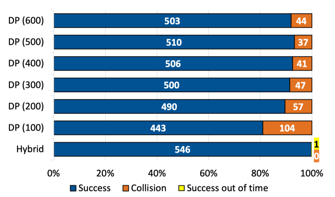 ▲图9|DP与HP的比较,共547个场景:DP以不同的碰撞概率成本执行,以调查不同的设置。橙色表示发生碰撞的场景数量©️【深蓝AI】编译