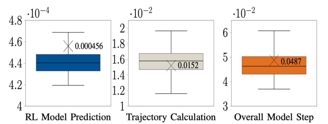 ▲图10|RL模型预测、轨迹束计算和整体模型每次迭代的执行时间©️【深蓝AI】编译