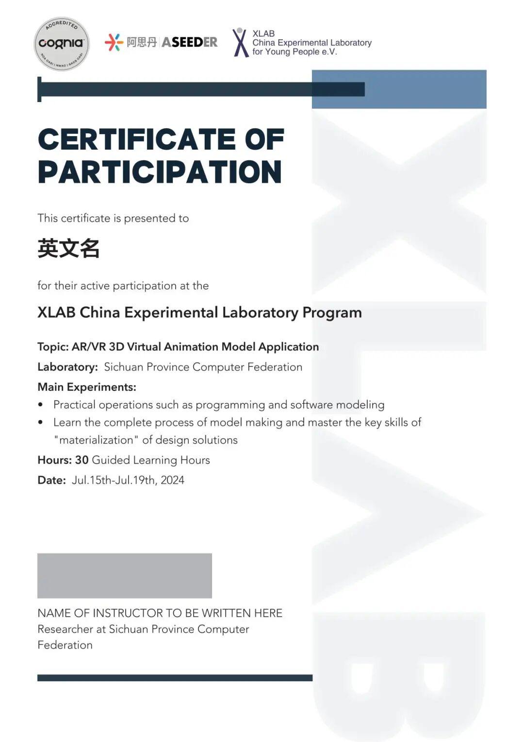 ● XLAB项目结业证书
